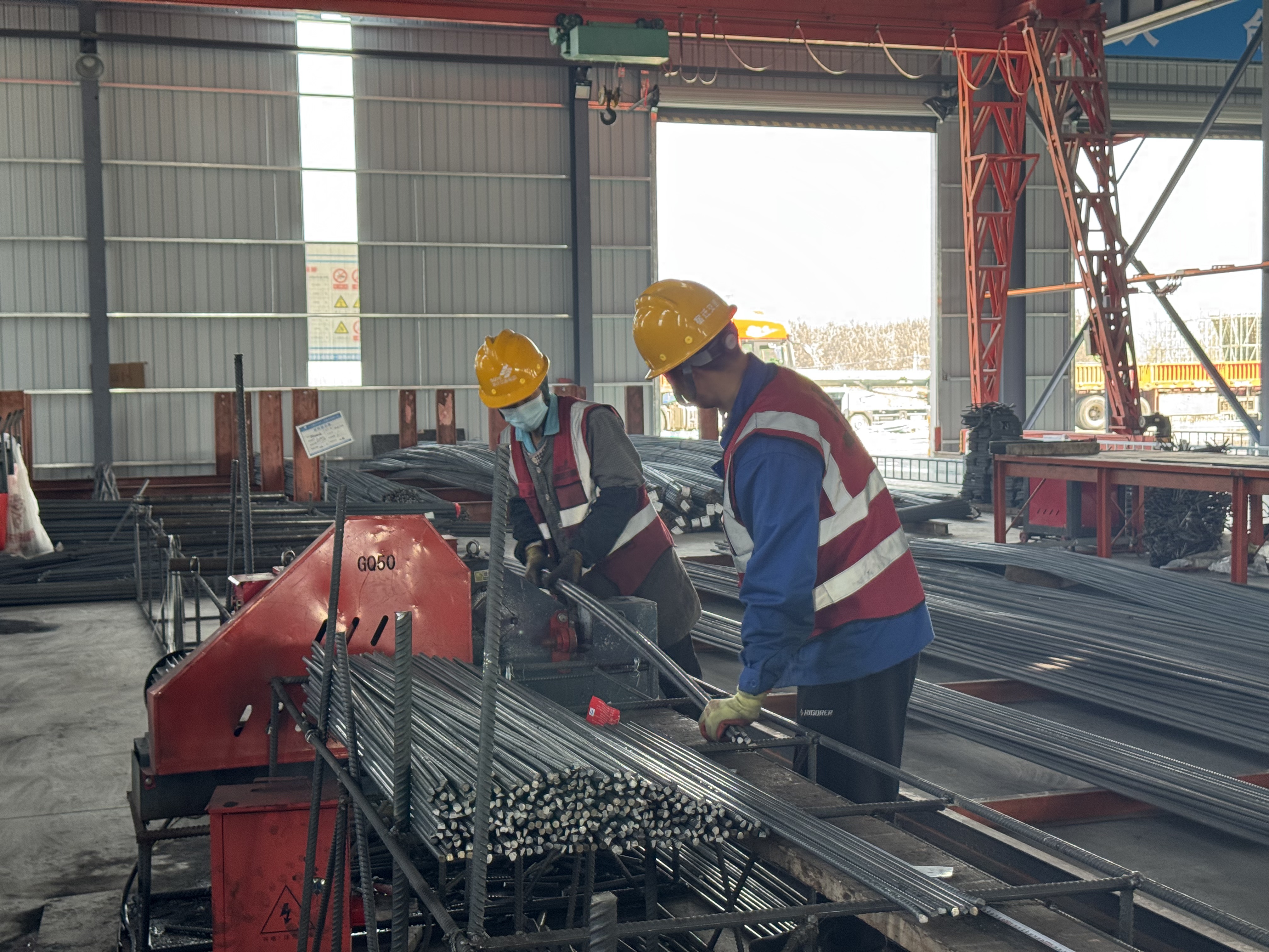 在钢筋集中加工配送中心,工人们正在有序作业