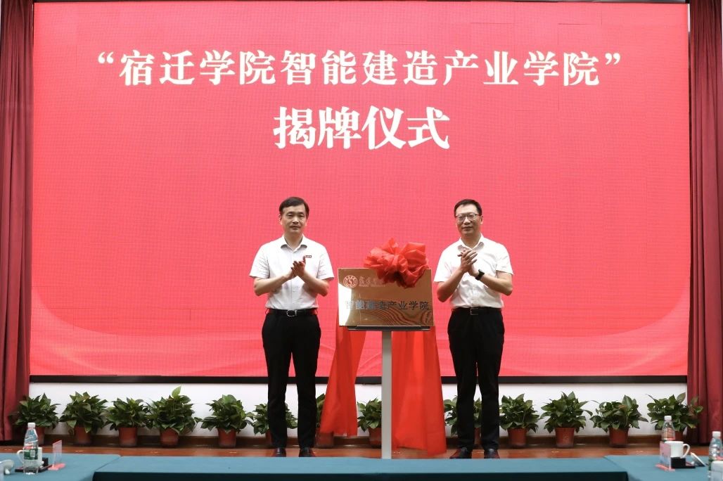教育培训基地、宿迁学院智能建造产业学院揭牌。仪式前,与会人员实地参观了宿迁学院机电工程学院实验室、建筑工程学院实验室、京东产业学院、艺术楼展厅、校史馆。