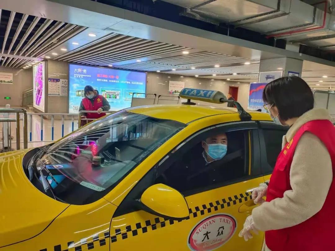 停车场公司党员志愿服务队在高铁宿迁站地下停车场进行志愿服务,引导地库内出租车、私家车有序停放,并停车区域内栏杆、座椅等公共设施进行擦拭消毒,做好疫情防疫及相关宣传工作。
