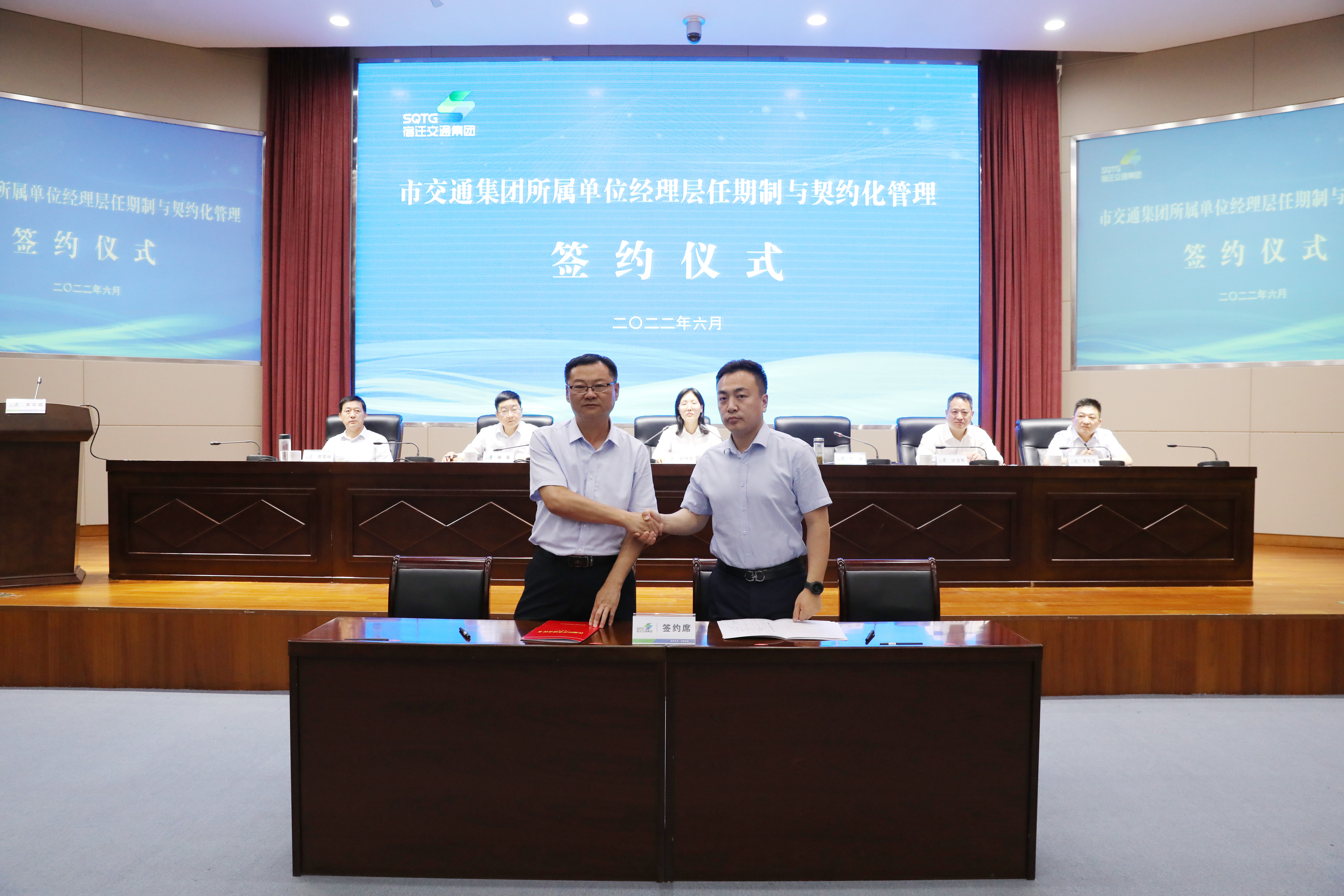 举行所属单位经理层任期制与契约化管理签约仪式,标志着集团在深入贯彻市委、市政府,市国资委关于深化国有企业改革的决策部署,夯实集团任期制改革成果上迈出的又一关键步伐。集团领导班子成员参加活动。
