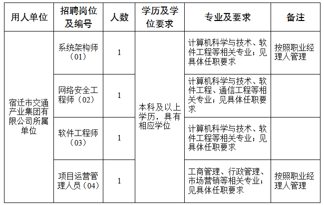 宿迁市交通产业集团有限公司2024年 招聘公告