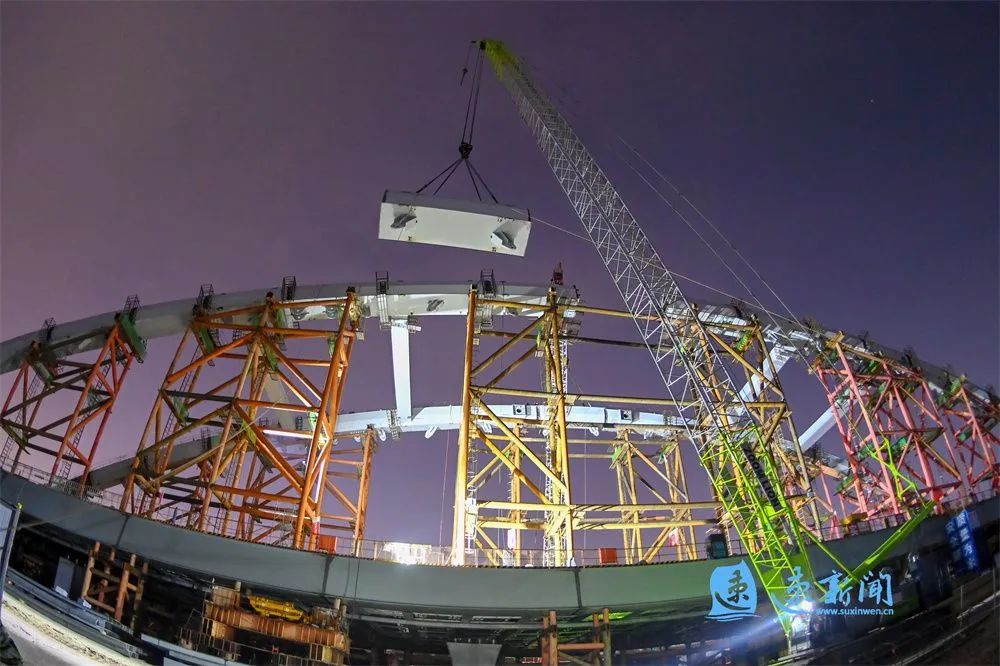 7月4号凌晨3点,北京路跨京杭大运河特大桥拱肋顺利合龙。