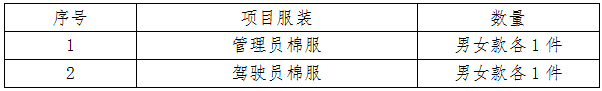 注:1、投标人的每件服装均不得体现商标和投标人名称。