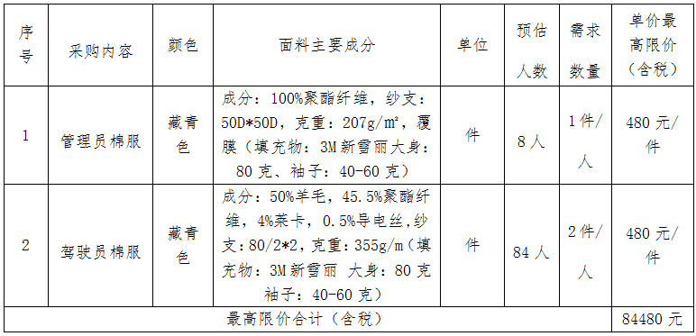 (一)主要内容:本项目为宿迁市城市公共交通有限公司职工冬季服装采购项目。采购内容包括: