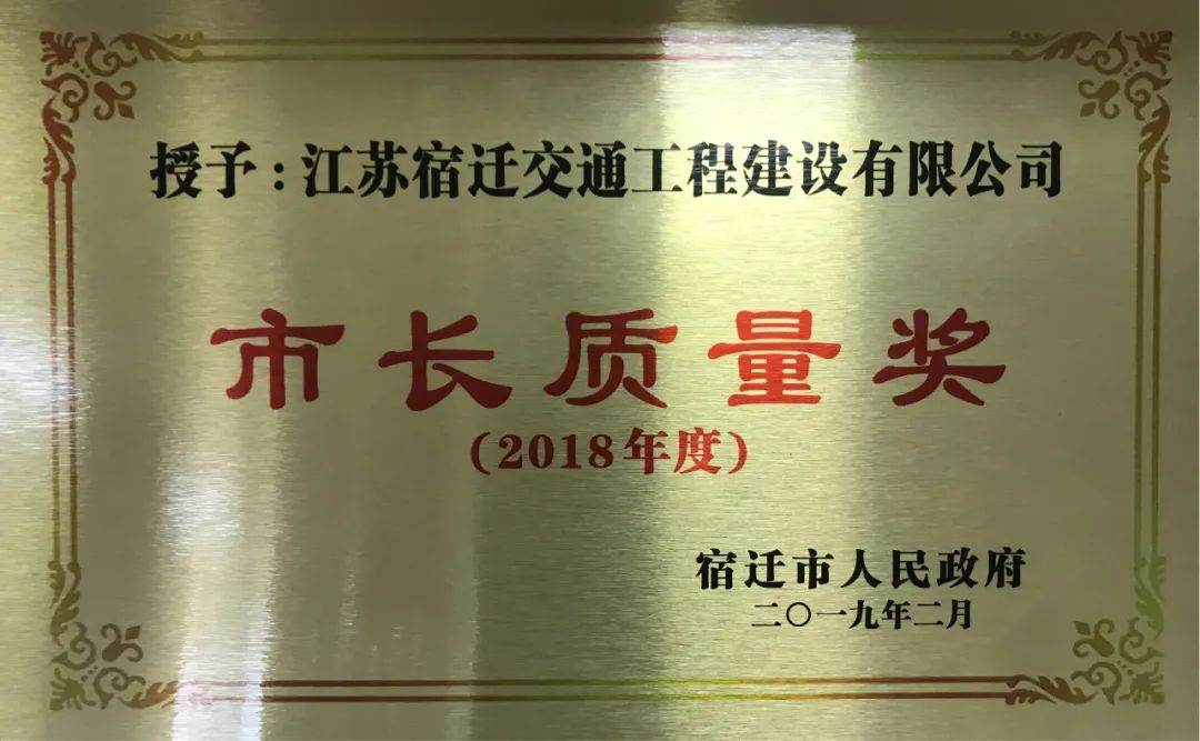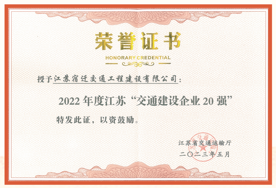 辛勤耕耘,终有收获。近年来,公司经营指标不断攀升,资质拓展不断升级,企业竞争力显著增强,一大批省市劳模、首席技师、技术能手等领军人才不断涌现。取得“省交通运输行业先进基层党组织”“江苏交通建设企业20强”“第一届江苏省交通运输行业文化品牌”“江苏省文明单位”“宿迁市市长质量奖”等多项省市级荣誉,多名优秀员工荣获“宿迁工匠”“宿迁市劳动模范”“新长征突击手”等荣誉。