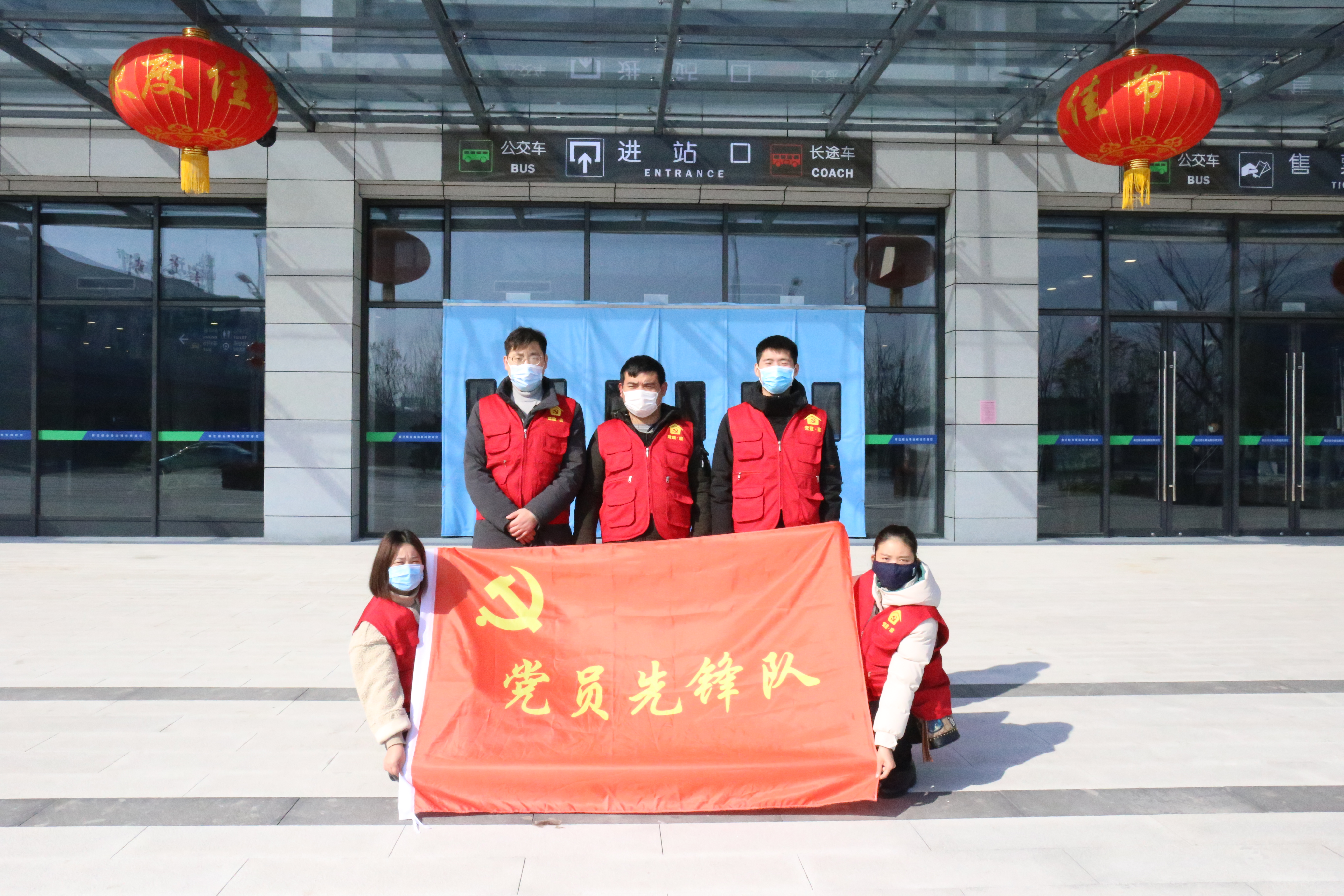 “党员先锋队”“青年突击队”和“退役军人应急救援队” 的多名党员、团员和退役军人主动请缨,组成志愿者队伍,轮流在宿迁综合客运枢纽劝导台、乘车口、下客区开展文明劝导和疫情防控志愿服务工作,向乘车市民测量体温、宣传文明交通、文明乘车常识并做好来往乘客问询解释等工作。