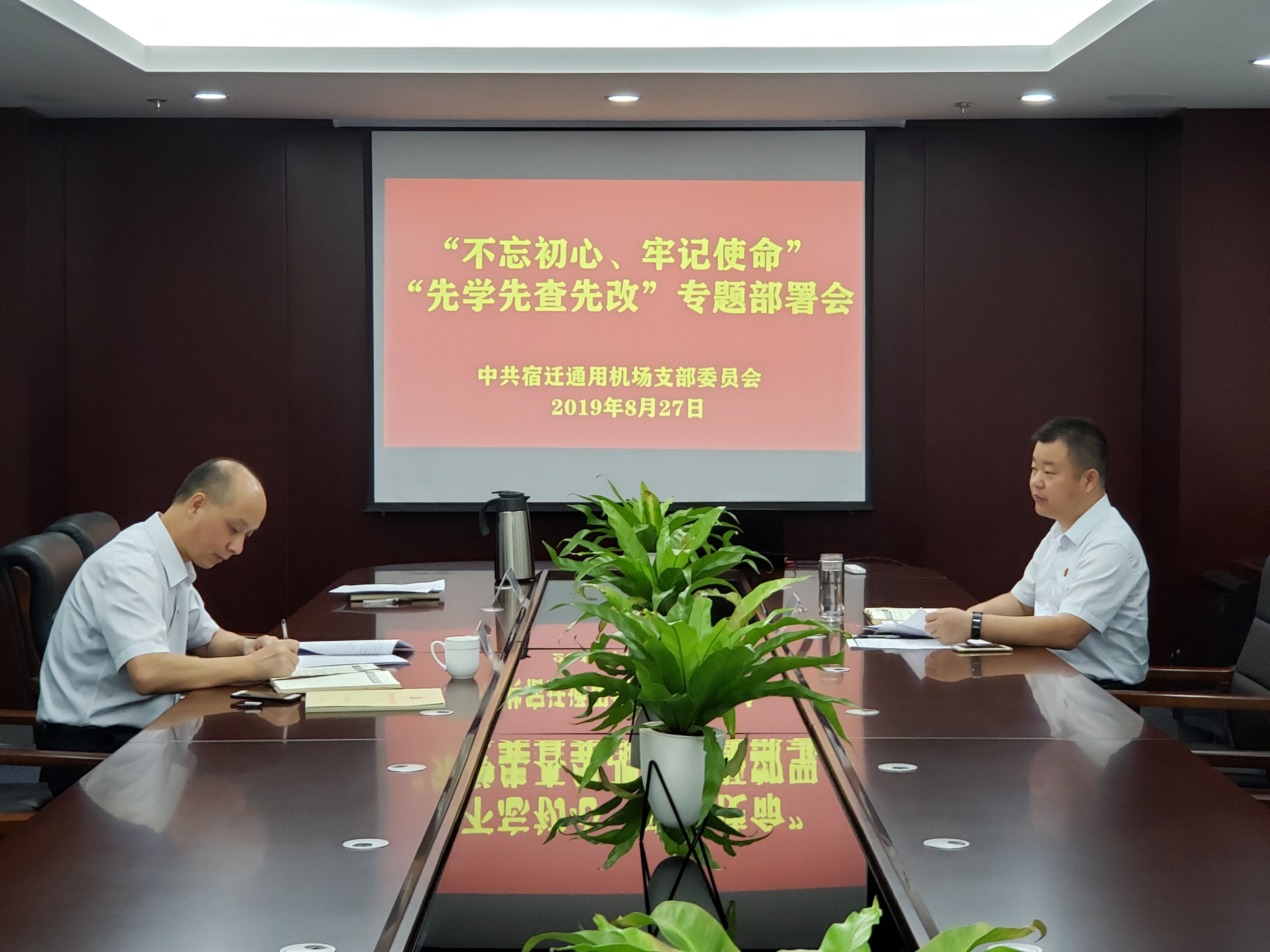为贯彻落实《关于在第二批“不忘初心、牢记使命”主题教育前开展“先学先查先改”活动的通知》精神,宿迁市洋河通用机场公司党支部于8月27日上午, 组织召开“不忘初心、牢记使命”主题教育 “先学先查先改”工作专题部署会。
