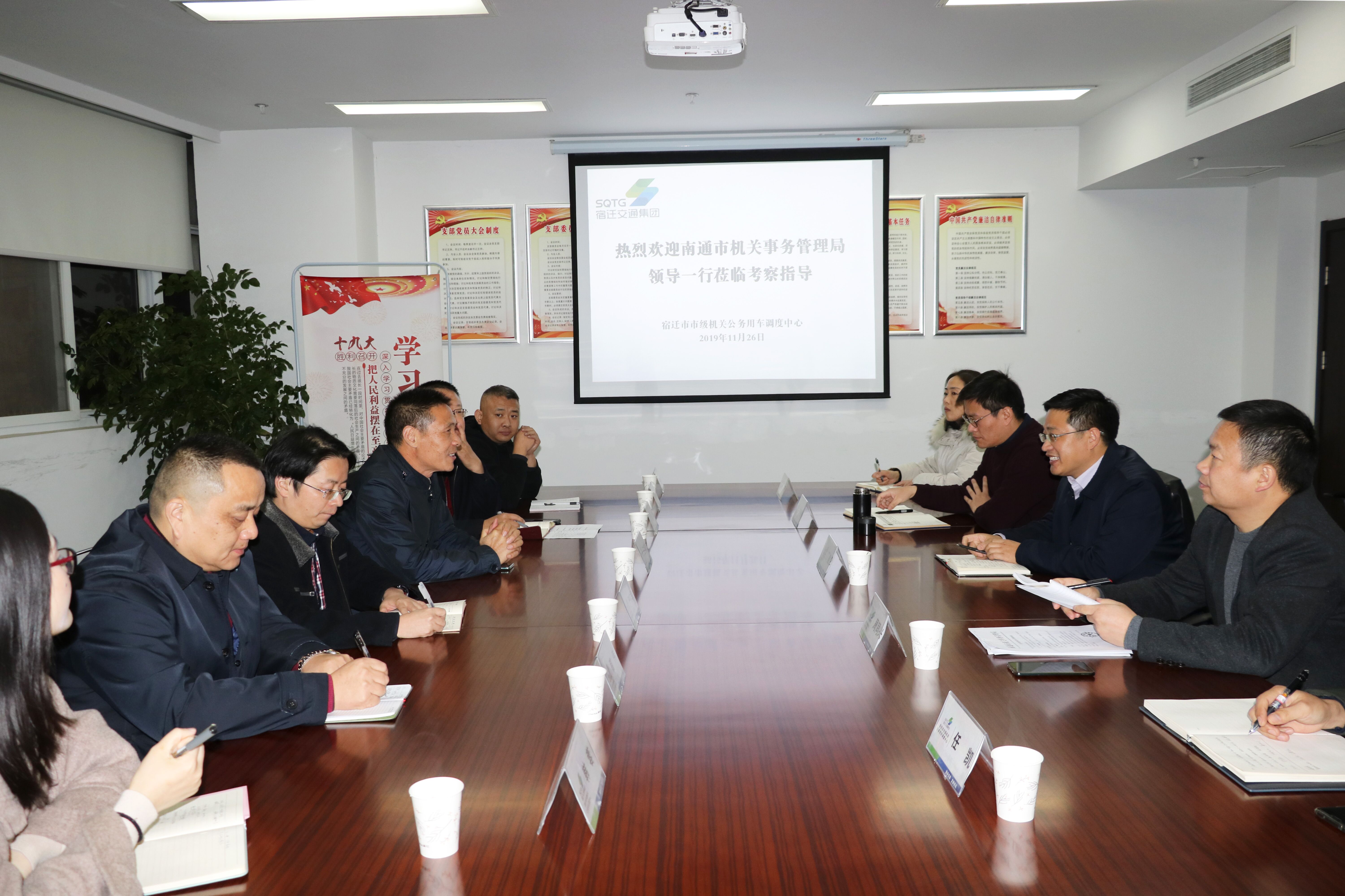 11月26日下午,南通市机关事务管理局党组成员王炳发一行到市公车调度中心考察交流,市机关事务管理局副局长丁健伦、公车调度中心主任程秋稚等相关同志参与座谈交流。