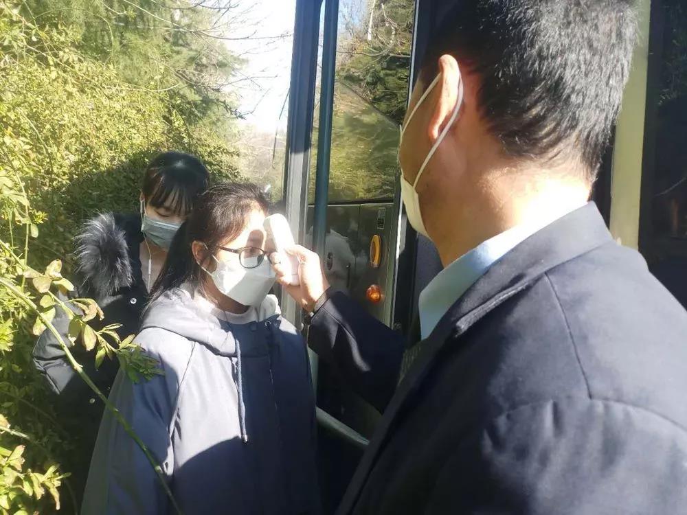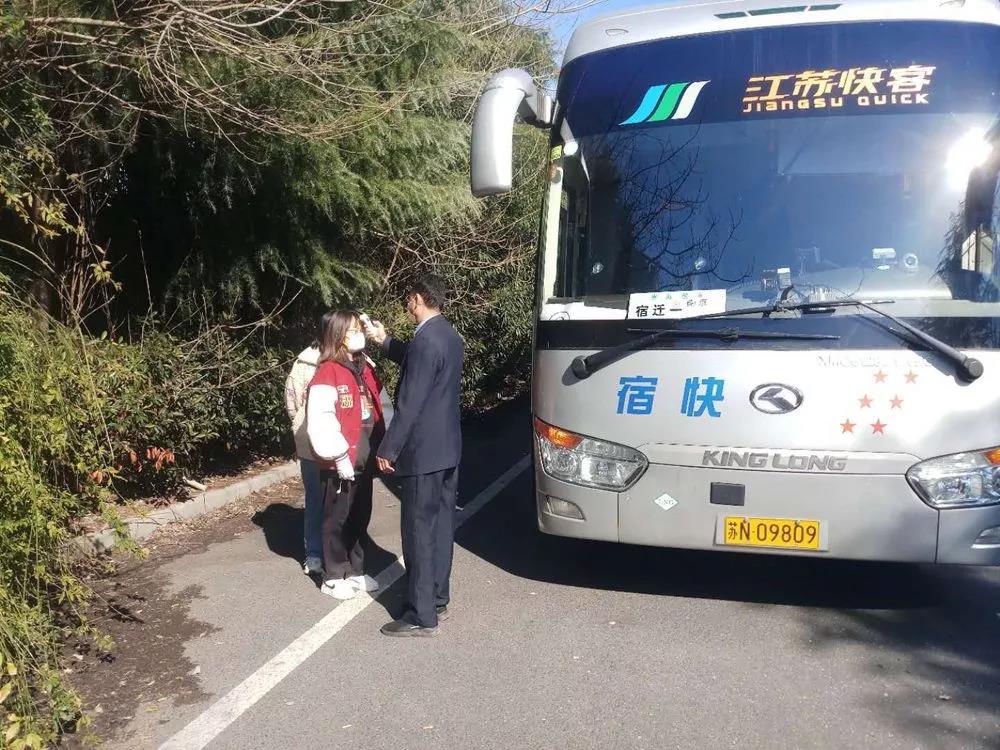 2月17日,在得到上级主管部门的许可后,宿汽集团安排车辆前往南京。经体温检测后,宿迁技师学院的101名学生分别乘坐4辆50座大巴,顺利返回宿迁。