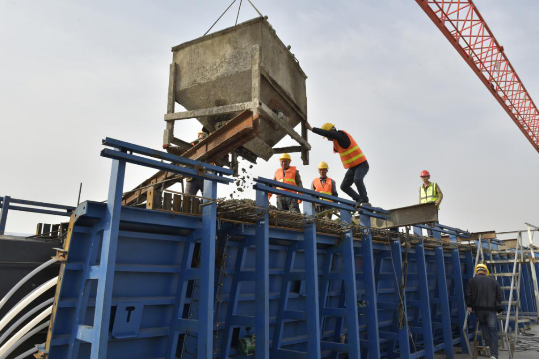 据悉,4月13日下午,宿迁市上海路(高铁站连接线)改造二期工程项目部组织召开首件安全技术交底会。混凝土浇筑前,高铁公司工程技术负责人、总监办、检测单位及施工单位对现场施工人员进行了详细技术交底和现场指导,明确分工,责任到人,同时安排人员在拌和站驻点确保混凝土供应,管理人员跟车运输,全面排查龙门吊、振捣器、振捣棒、临时用电、喷淋等,确保首片预制箱梁顺利浇筑。为确保混凝土施工质量,技术人员优化设计方案,对大体积混凝土水化热进行了理论分析和模拟计算,现场布置喷淋养护、附着式振捣器配合振捣棒等措施,确保浇筑高质量。