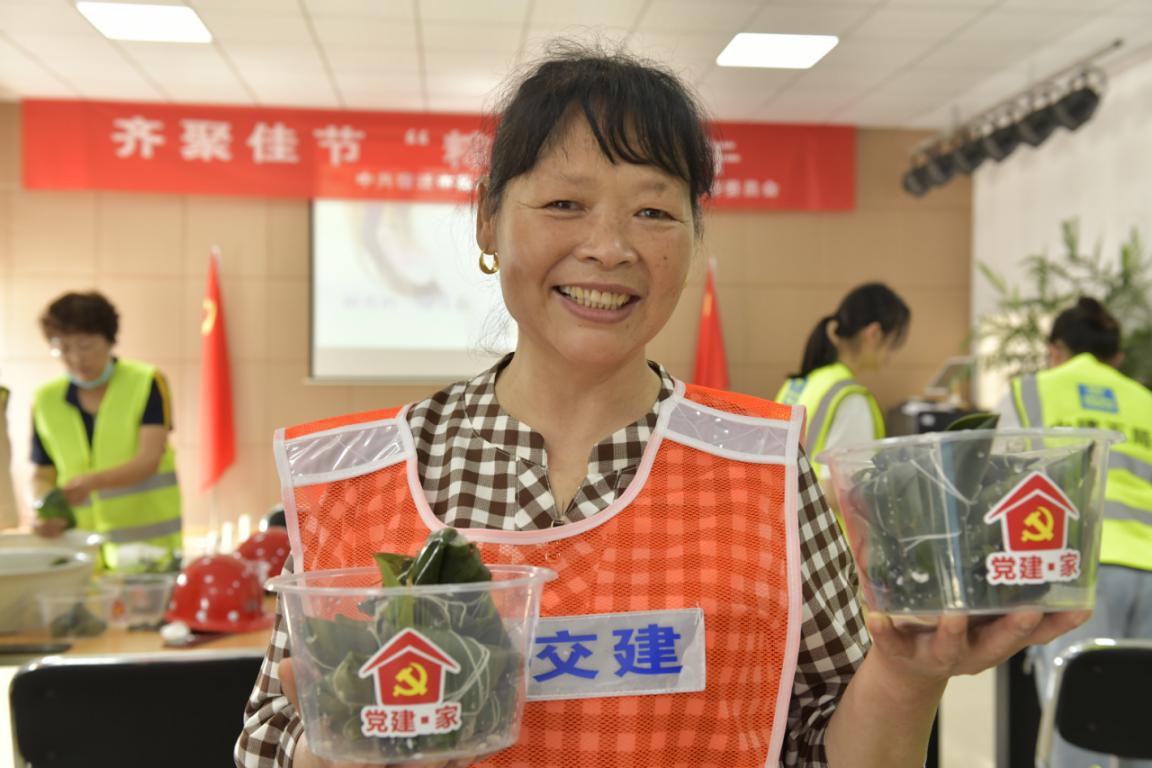 6月20日,“粽”情端午系列主题活动,在“党建·家”活动中心开展,为一线职工们送上端午祝福、廉政家书和安全嘱托。一线建设者们接过高铁公司党支部志愿者送的热乎乎粽子和矿泉水,脸上露出幸福的笑容,倍感温馨。