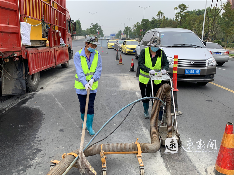 “我们是老双庄人,这条路就在我们家门口,我们尽快完成建设任务,道路通车了就能方便很多人出行。”10月2日上午7时许,家住宿城区双庄街道的单金玲、单翠玲姐妹早早来到西湖路(世纪大道至发展大道段)提升改造工程施工现场进行旧标线清除工作。