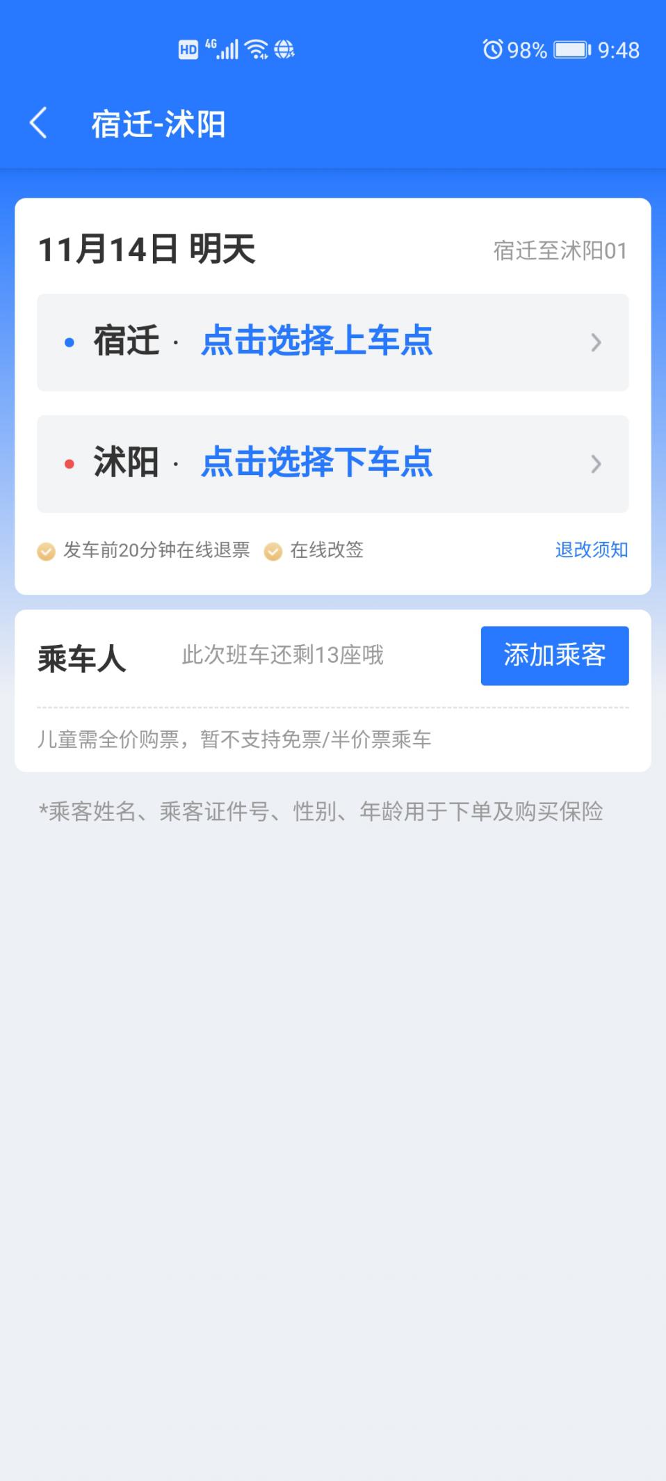 步骤四:选择上车、下车站点,填写乘车人信息;