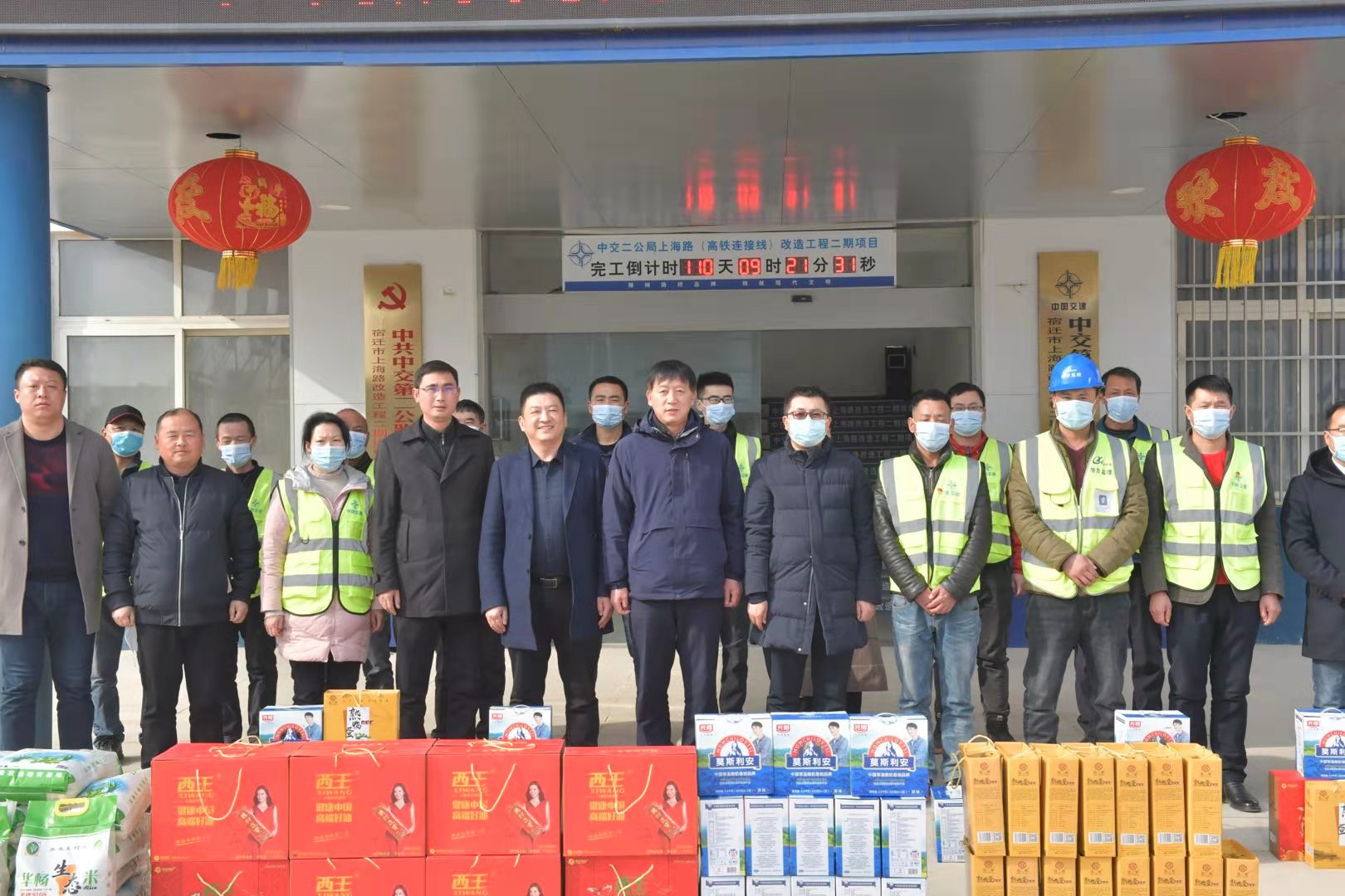 在新春佳节即将到来之际,91porny 党委委员、副总经理黄雪林带队前往上海路(高铁站连接线)改造二期工程项目部,看望慰问春节期间坚守岗位的一线建设者,向大家致以新春祝福和诚挚问候,对大家积极响应“就地过年”倡议表示衷心感谢。