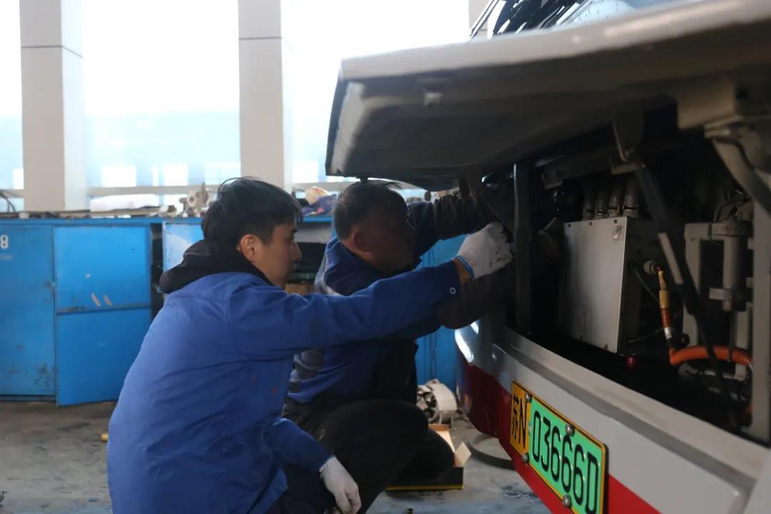 此外,公交公司驾驶员在安全行车的同时,提醒上下车乘客注意脚下、小心慢行,防止摔倒事件发生;进入场站后及时清理车厢内及前后门处积雪积水。监控中心充分发挥智能监管功能,每隔20分钟向所有营运车辆发送安全行驶语音提醒,进一步强化驾驶员安全行车意识。修理厂全体职工严格执行修理责任制,加快维修速度、提高维保质量、确保运力充沛,为市民安全便捷出行保驾护航。