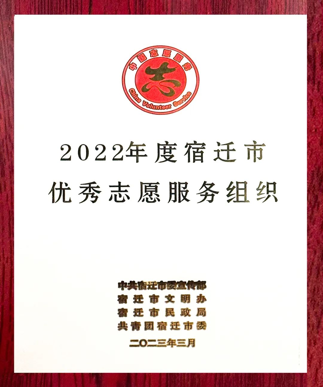 【宿迁交建】“小水滴”志愿服务队荣获 2022年度宿迁市优秀志愿服务组织