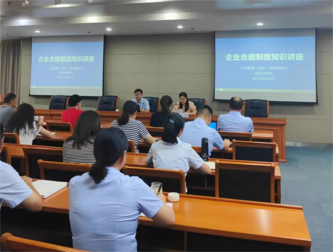 组织开展企业合规管理培训,邀请江苏联盛(宿迁)律师事务所律师顾祥祥作专题讲座,旨在进一步强化风险防范意识,提升职工合规管理及风险分析研判能力。