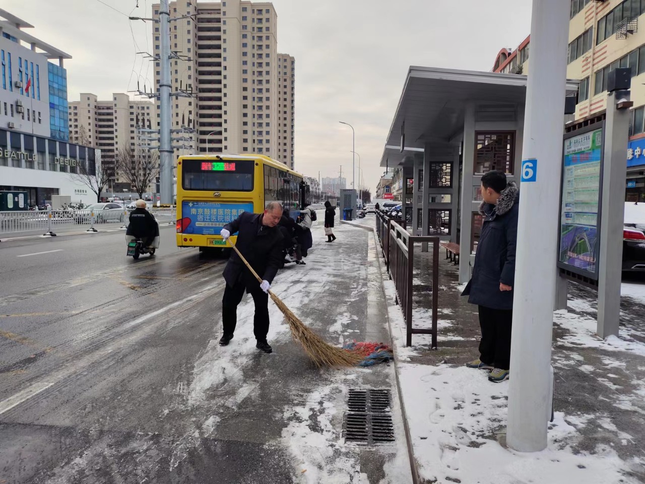 各公交调度站积极响应职工扫雪除冰、热火朝天用行动融化冰雪保障车辆正常进出