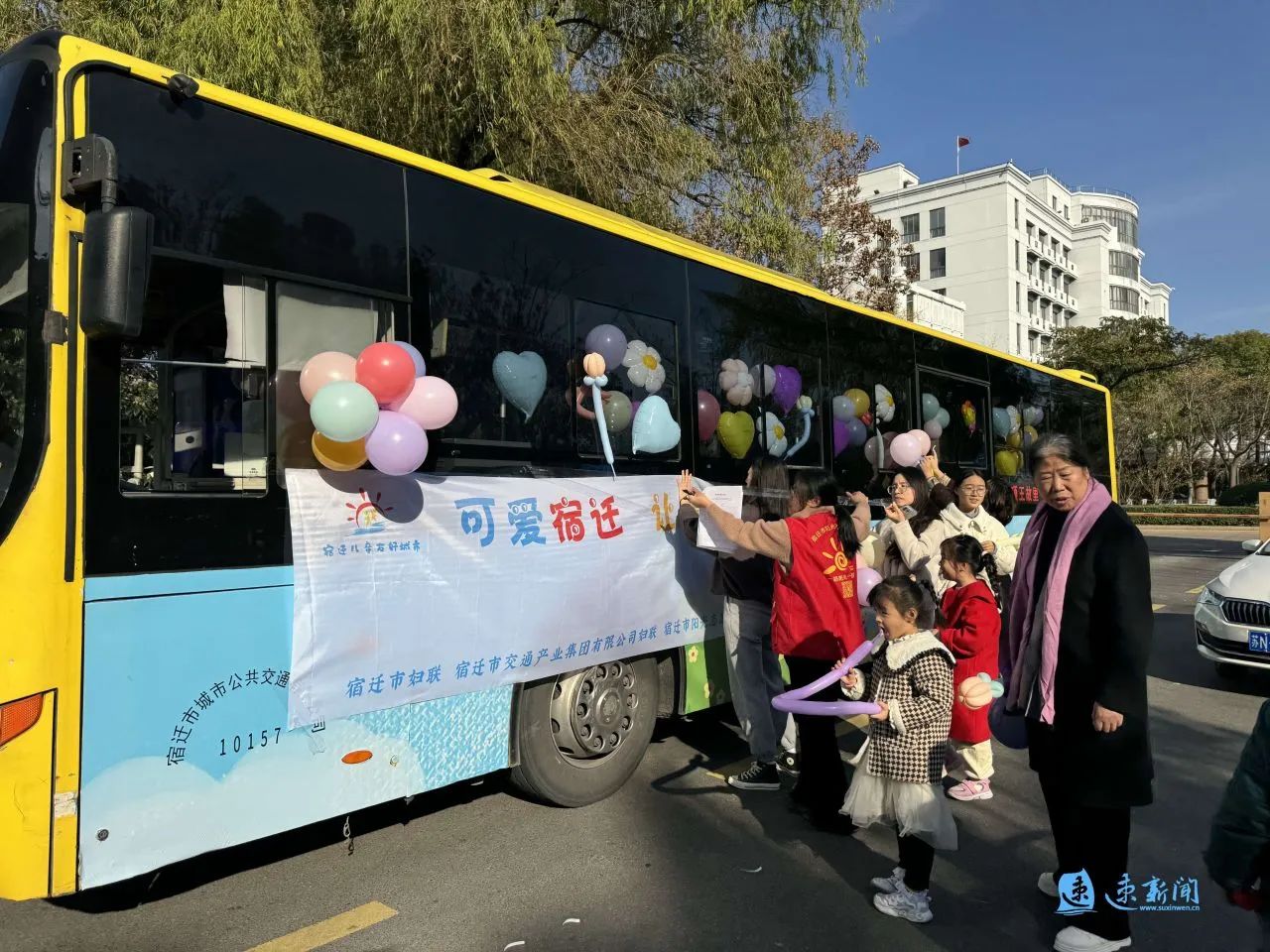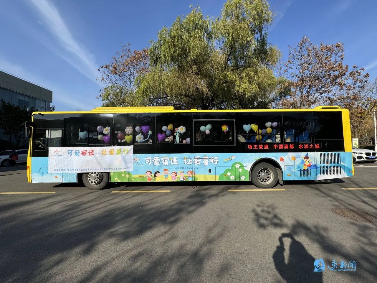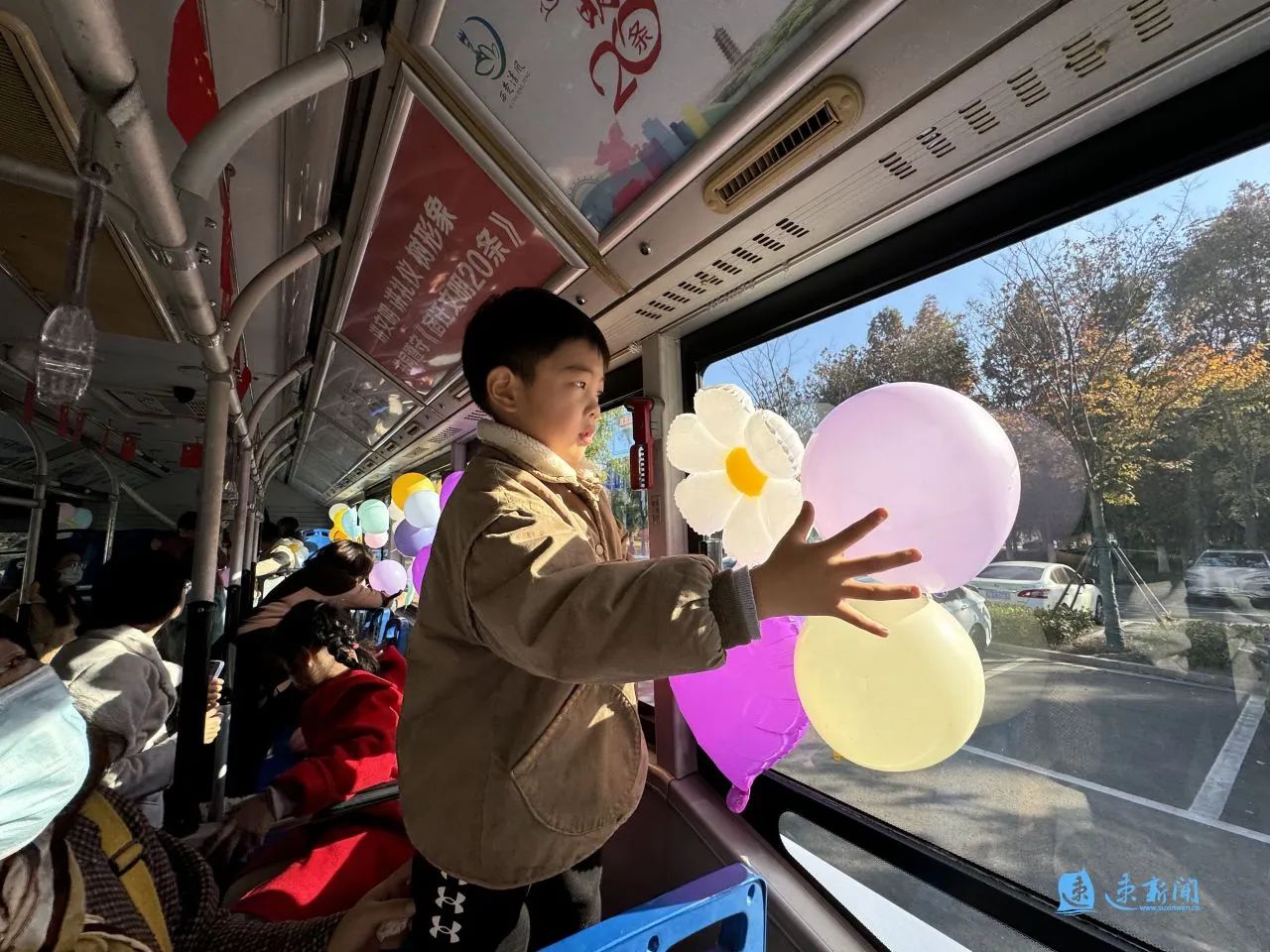 车窗被缤纷的气球“占领”,车身贴着“可爱宿迁 让爱童行”的标语……11月23日下午,宿迁市人民大道群众大厦的院子里停放了一辆儿童友好公交巴士,等待着孩子们用爱和童趣装点它。