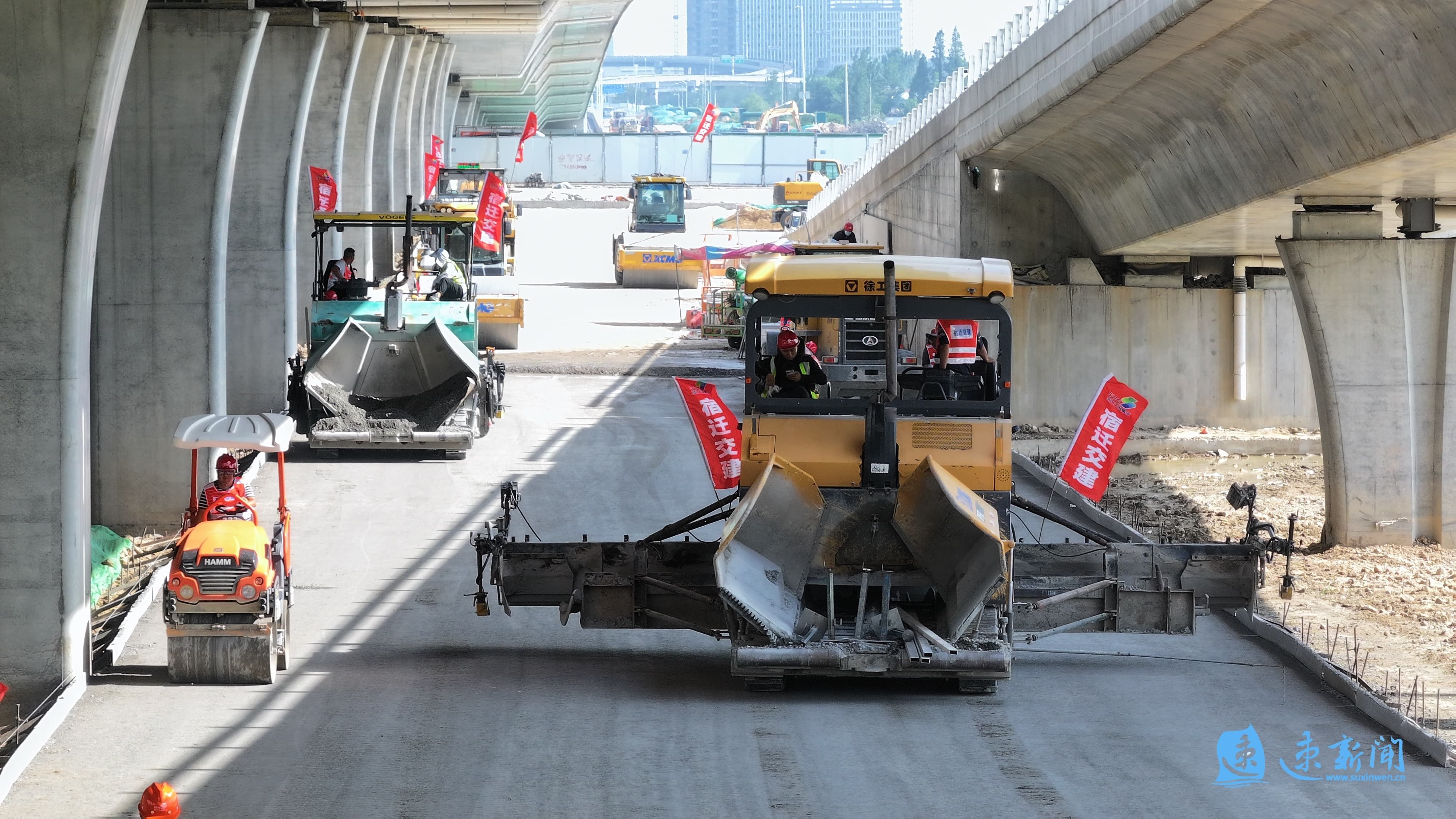 高空俯瞰建设中的酒都路快速化改造工程,这条南北走向的交通动脉已全线贯通,宛如一条绵延的钢铁巨龙,气势恢宏。桥下施工区域,两台摊铺机正匀速摊铺水稳层,压路机紧随其后来回碾压,现场机械轰鸣,一派繁忙有序的施工景象。截止目前,完成投资21.09亿元,占项目总投资的92%,预计年底建成通车。