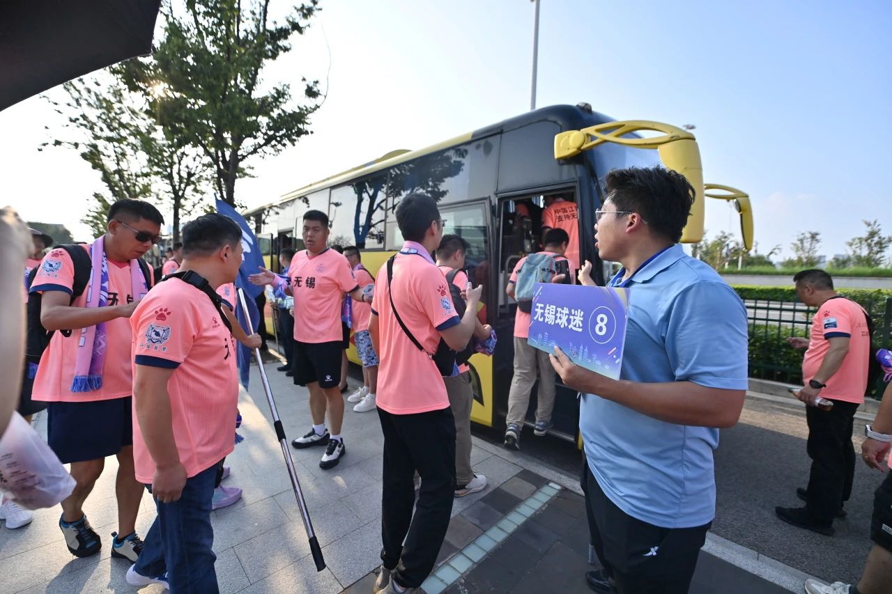 为方便无锡球迷前往现场观赛,91porny 在高铁宿迁站站前广场(上海路辅路)处,组织安排18辆定制公交,无缝接驳其直达比赛场地宿迁奥体中心,确保从“高铁下车”到“入场看球”的过程畅通无阻。