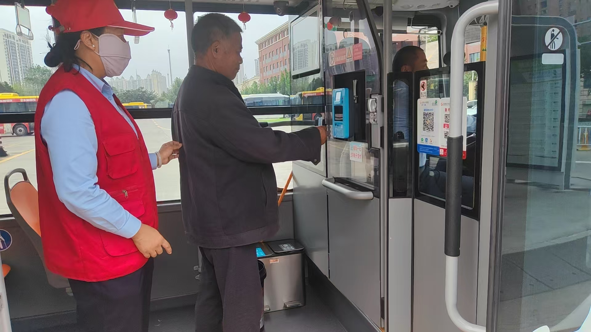 小小的车厢里,藏着城市的温暖记忆。节日期间,公交公司组织志愿者在重点站点开展导乘服务,主动帮扶老幼乘客、解答旅游咨询、引导排队乘车,用热情服务传递城市温度。301路公交车厢内,车顶两侧整齐悬挂着鲜艳的五星红旗,微风拂过,红旗轻轻摇曳,让流动的“中国红”成为街头最美风景线。
