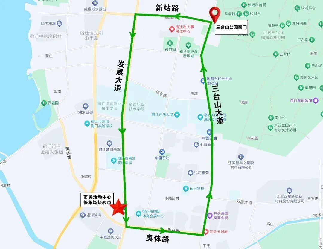 行驶线路:发展大道—奥体路—三台山大道—新站路—发展大道。
