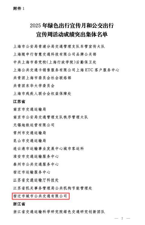 公交公司将以此次表彰为新起点,继续秉持“人本、智慧、绿色”的服务理念,持续推广新能源车辆、优化公交线网、创新服务模式、升级智慧公交,不断提升公交服务的便捷性、舒适性与吸引力,引导更多市民选择绿色出行方式,为宿迁建设低碳城市、打造生态宜居家园贡献公交力量。