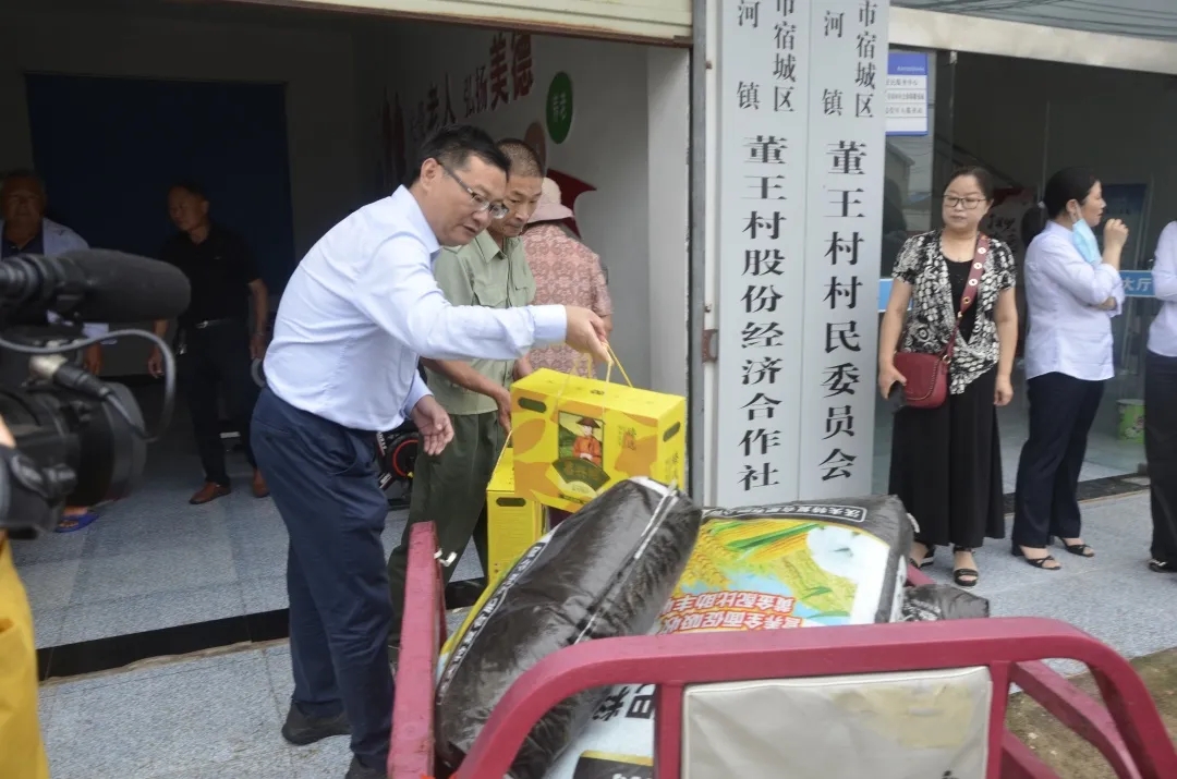 6月23日下午,在端午节来临之际,市交通集团总经理史明霞、党委副书记周斌一行前往龙河镇董王村,走访慰问结对户,为他们送去粽子、化肥等慰问品及节日的祝福。