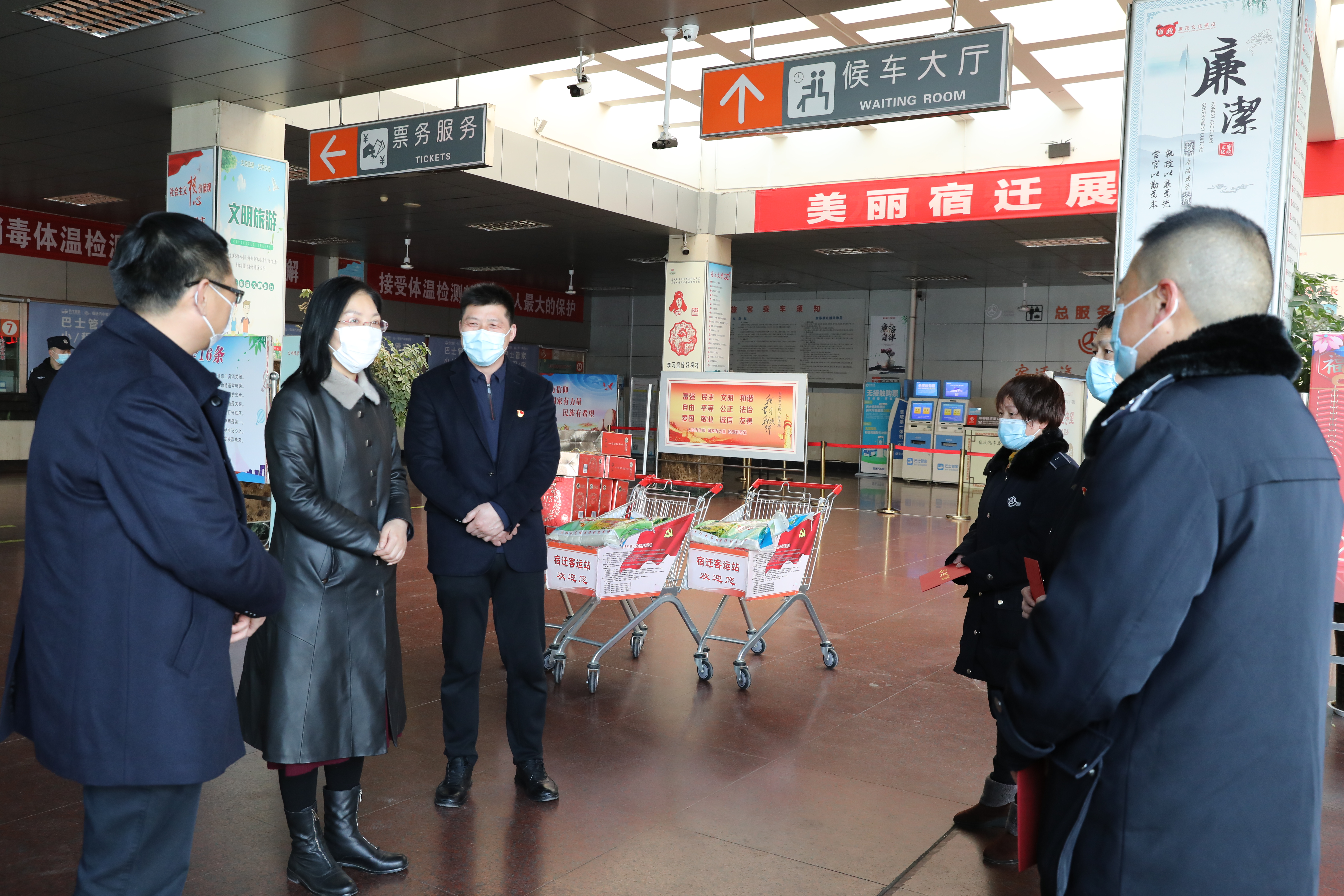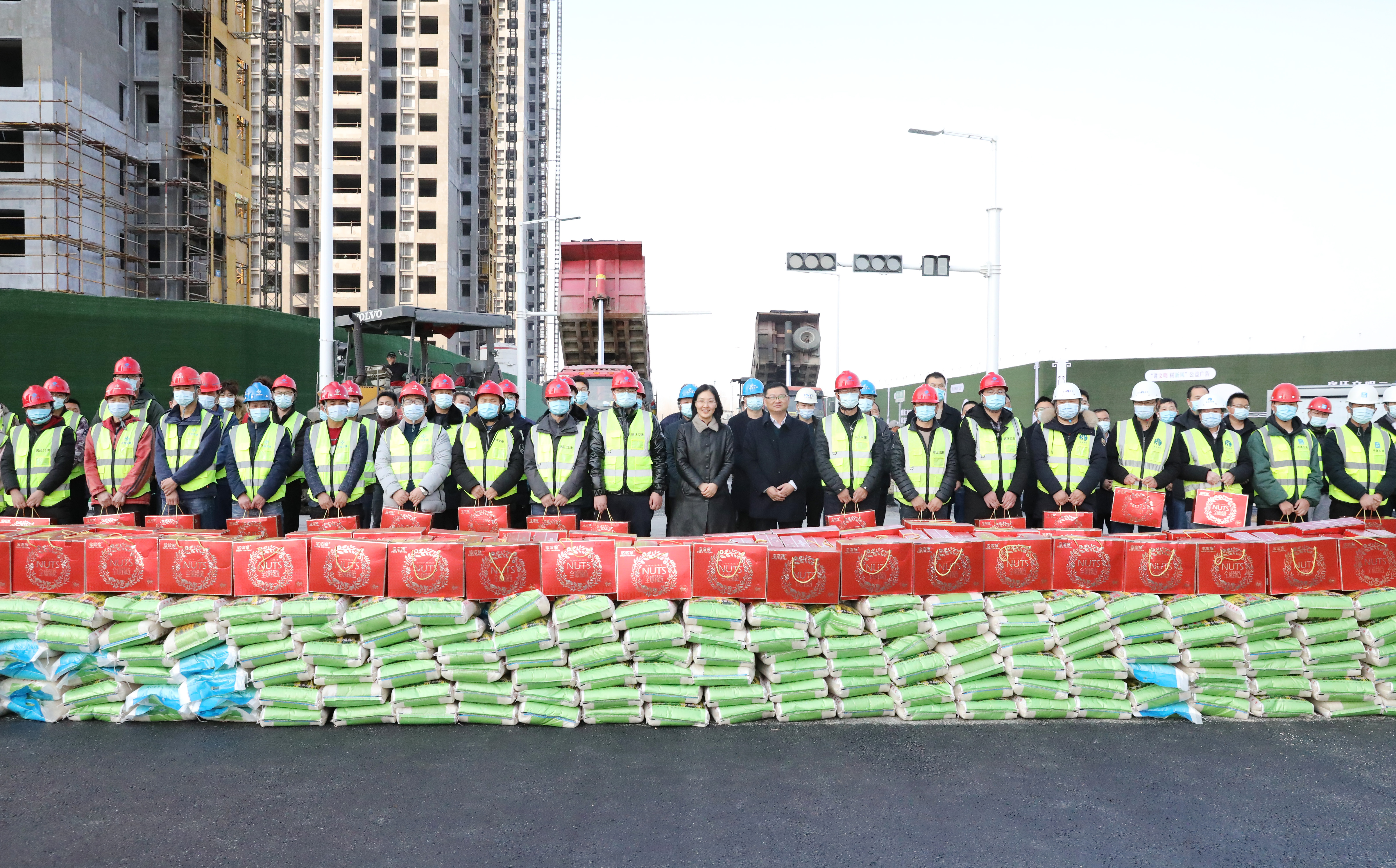 句句问候送心意,声声关怀暖人心。在市高铁商务区市政配套工程和宿迁汽车客运站,集团领导与一线工人亲切交流并送上新春的祝福,嘱咐大家要注意防寒保暖,严格遵守疫情防控要求,在做好工作的同时注意身体,并强调要科学组织施工、强化安全生产,切实做到疫情防控和安全生产两手抓、两不误,确保一线员工过上一个欢乐、祥和、平安的新春佳节。