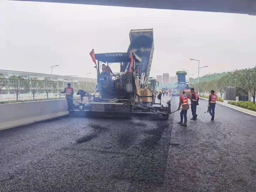 上海路(高铁站连接线)改造二期工程正在进行沥青面层摊铺