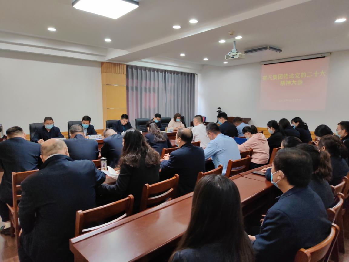 近日,宿汽集团召开传达学习贯彻党的二十大精神大会,落实省、市、集团有关会议精神,安排部署贯彻落实措施。