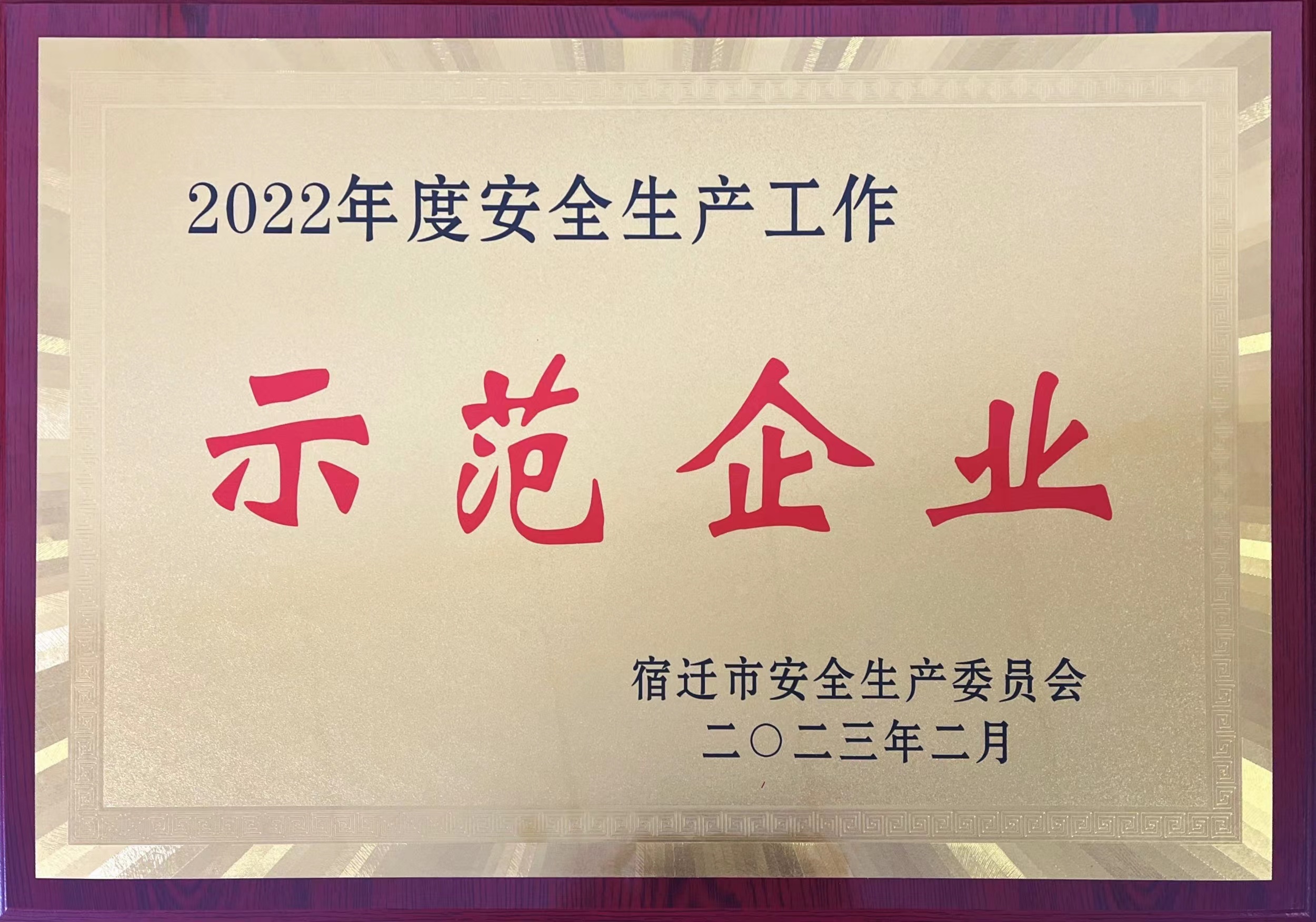再获“安全生产示范企业”称号。