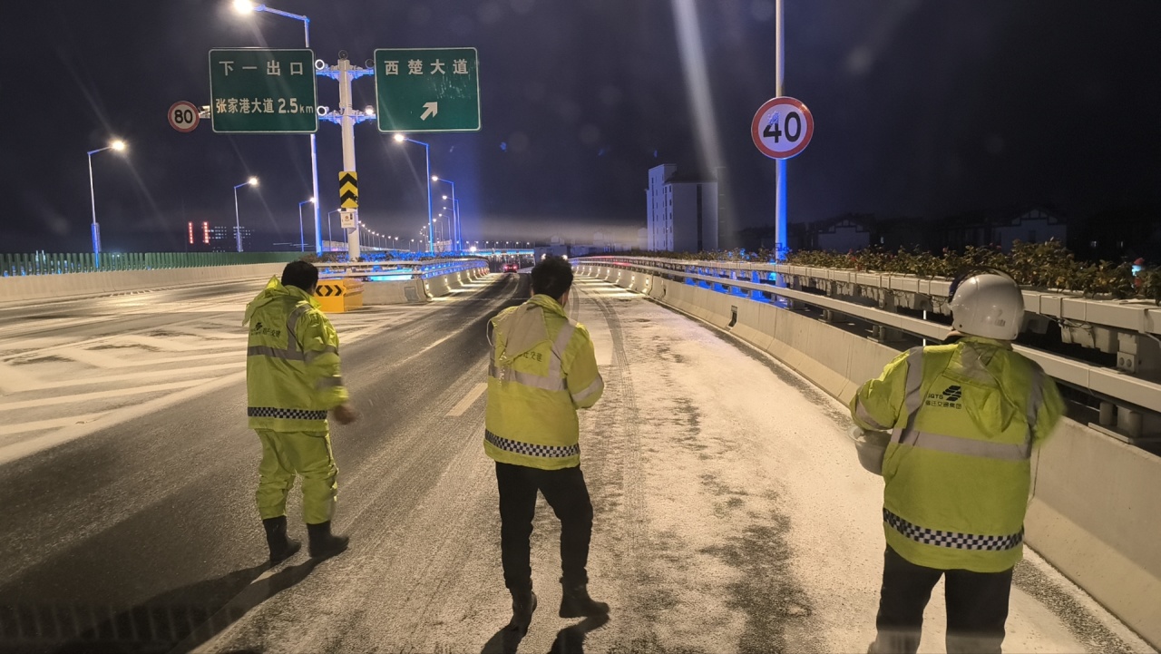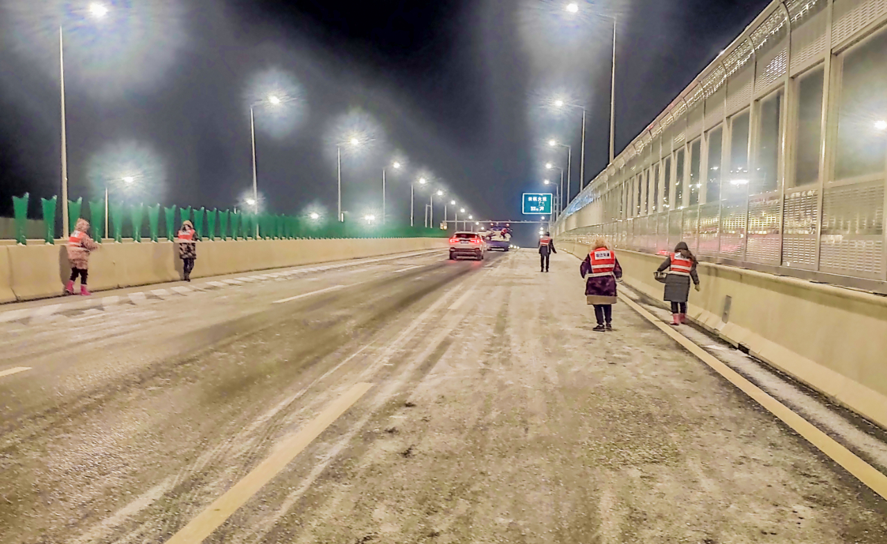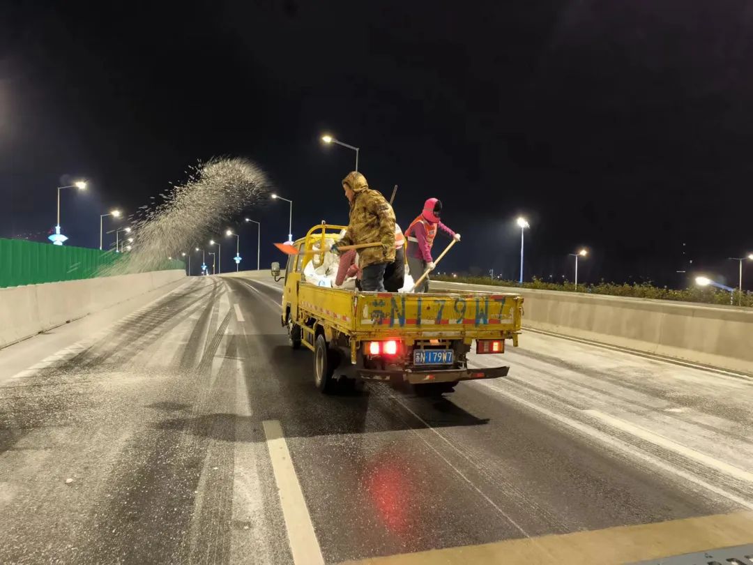 截至12月16日凌晨1时,共使用防滑石子80吨、融雪盐70吨、融雪剂60吨,投入融雪撒布机、扫雪车等作业车辆21台,出动除雪人员200余人次;上海路、迎宾大道、北京路、洋河大道等养护路段全线无结冰通行。