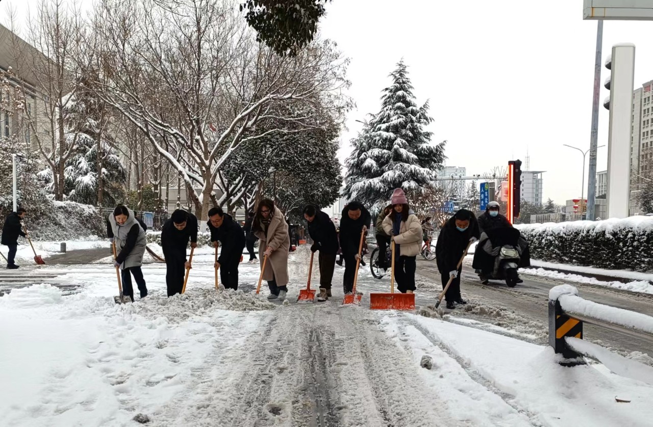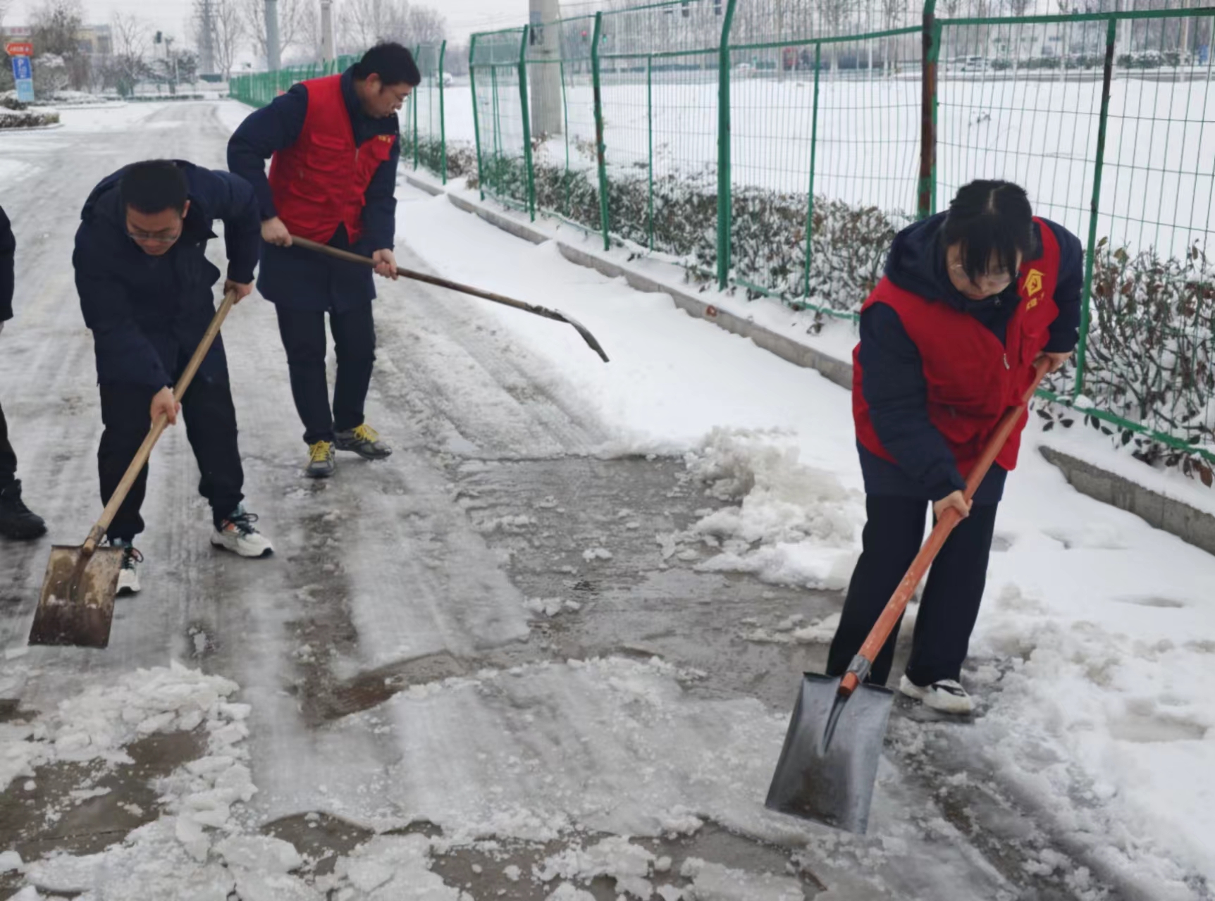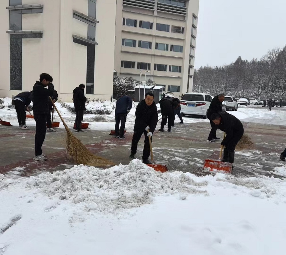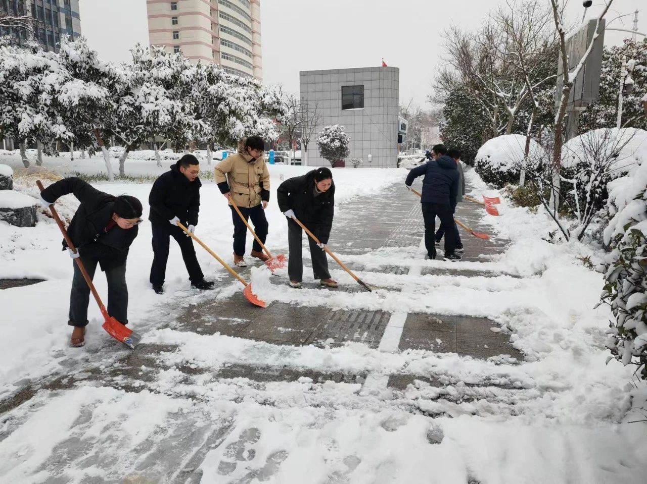 东枢纽公司组织全体干部职工高效有序开展扫雪除冰工作。对电子商务园区东枢纽公司办公大楼周边及主要通行路段进行清扫;对东枢纽建设者之家,紧急联动各租赁单位进行扫雪除冰工作,有效保障相关单位正常工作运转。