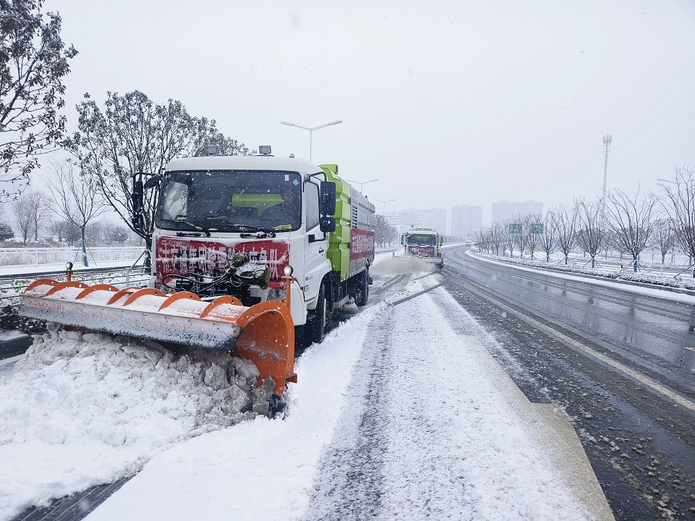 宿迁交建迅速启动应急预案,快速出动应急养护人员200余人和雪铲车3辆、滚雪车2辆、装载机30辆、融雪剂洒布车3辆、托运物资车辆18辆、巡查车13辆,投入融雪物资300吨,对所养护路段全面开展除冰融雪作业。