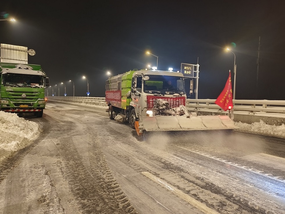 高铁公司进一步加大研判、加强巡查力度,4日夜间出动除雪应急保障人员195名,巡查车、滚雪车、铲雪车、融雪剂撒布机等机械设备约56台,全面对上海路、北京路、迎宾大道二期和洋河大道开展撒融雪剂、除雪工作,累计撒融雪剂260余吨。目前所管养路段全部通畅。