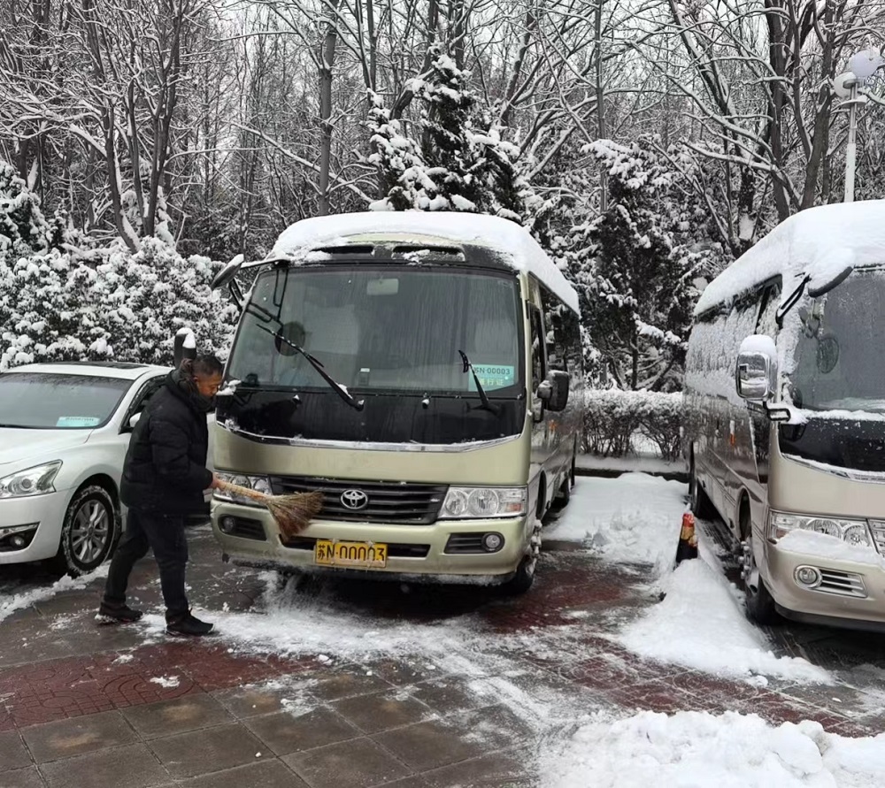 恒通租赁(公车调度中心)启动特殊天气下车辆运行应急预案,组织30余名工作人员,对党政办公大楼院内开展扫雪除冰工作,清理保障车辆积雪,检查车辆工况,对驾驶员进行安全提醒,全力做好雨雪冰冻天气市级机关安全出行服务保障工作。