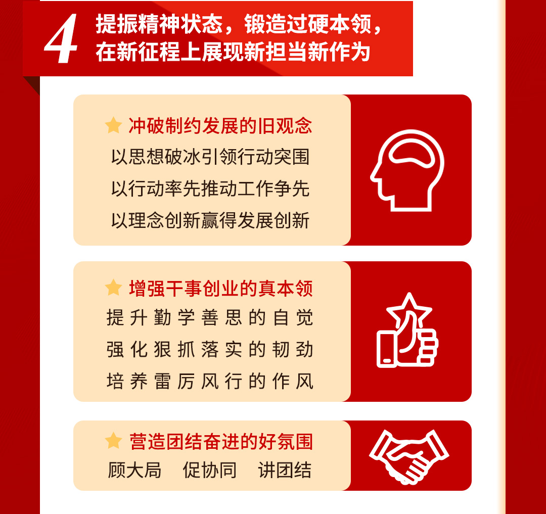 会议要求,各单位、各部门要提高站位、深化认识,以“凝心聚力”的共识抓落实,聚焦重点、攻坚突破,以“抓铁有痕”的韧劲抓落实,党建引领、强基固本,以“从严从实”的作风抓落实,为改革发展提供坚强组织保证。