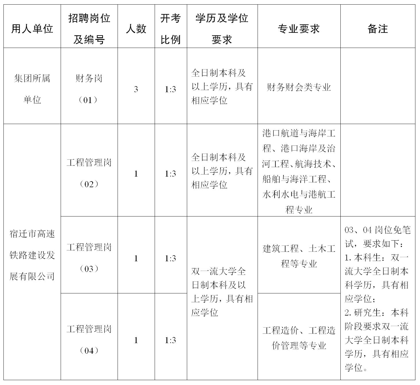 4. 具备招聘岗位要求的其它资格和条件。具体详见《宿迁市交通产业集团有限公司2022年夏季校园招聘岗位表》。