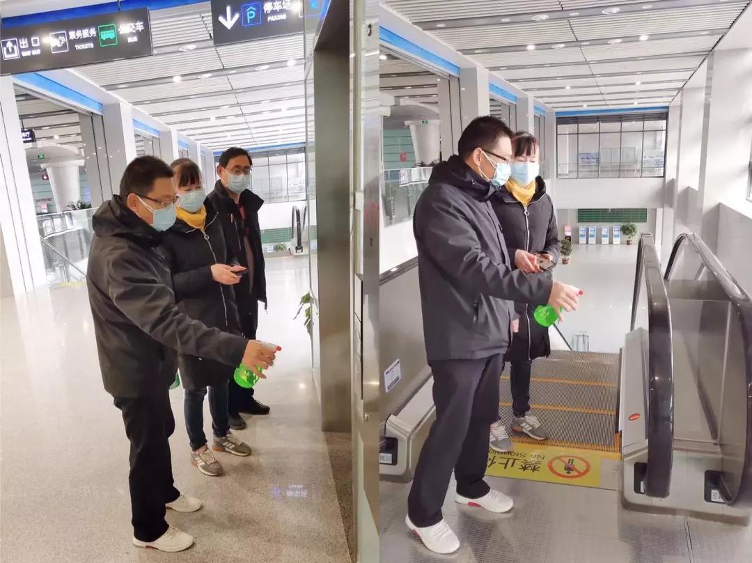 而在物业保洁人员工作的一线场所,必然也能看到沈士军的身影,他必须确保地下停车场出租车带客区、换乘通道、一楼公交发车区、二楼长途候车大厅以及电梯、卫生间从内到外进行全面消毒,不留死角。当然,他也时刻对保洁人员使用的酒精、消毒液进行安全交底。